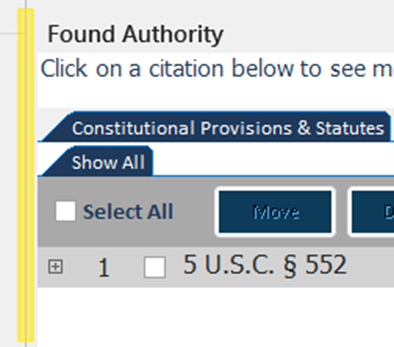 operation. This panel organizes citations by type (cases, statutes, rules,